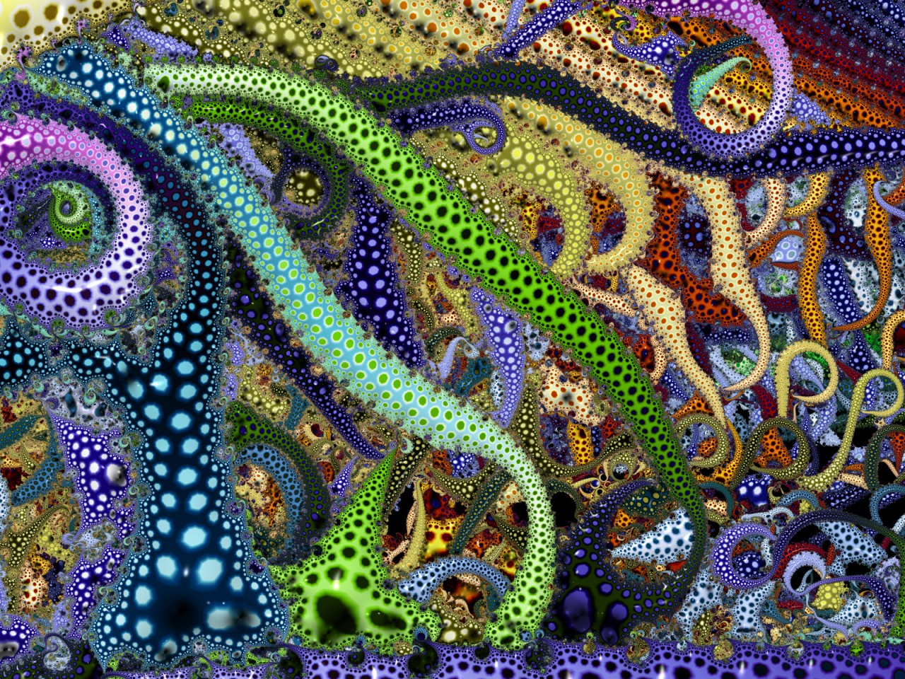 A Mandelbrot set in the Coupling Loops formula with spotted texture.