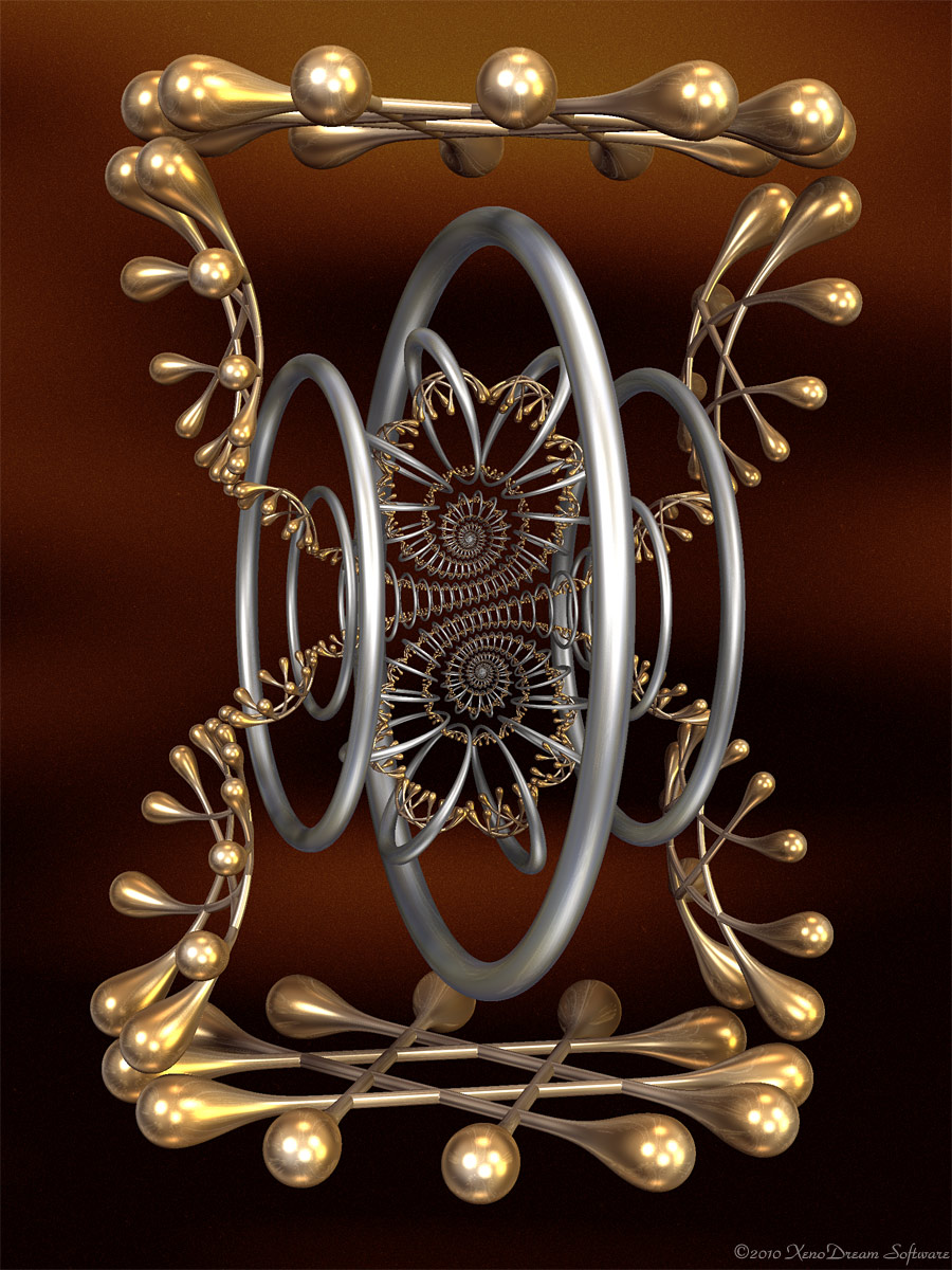 XenoDream v2.3. A pair of complementary Moebius transformations can turn three objects into an elegant structure.