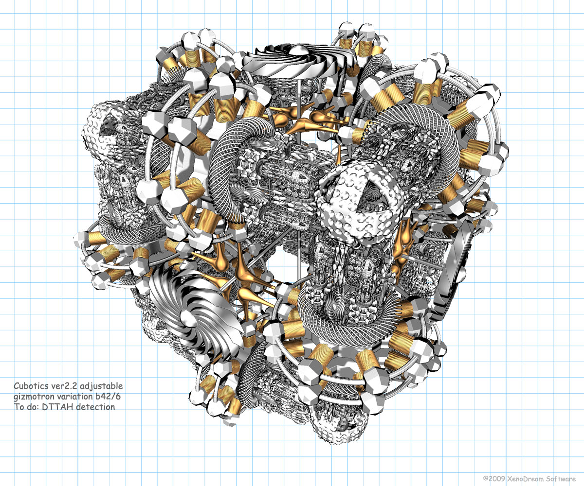 XenoDream v2.2. Cubic symmetry with recursive elements, and sketch effects for lighting.